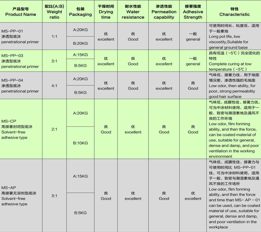 针对不同的素地基层应选择合适的环氧树脂底涂,基功能如下所示: